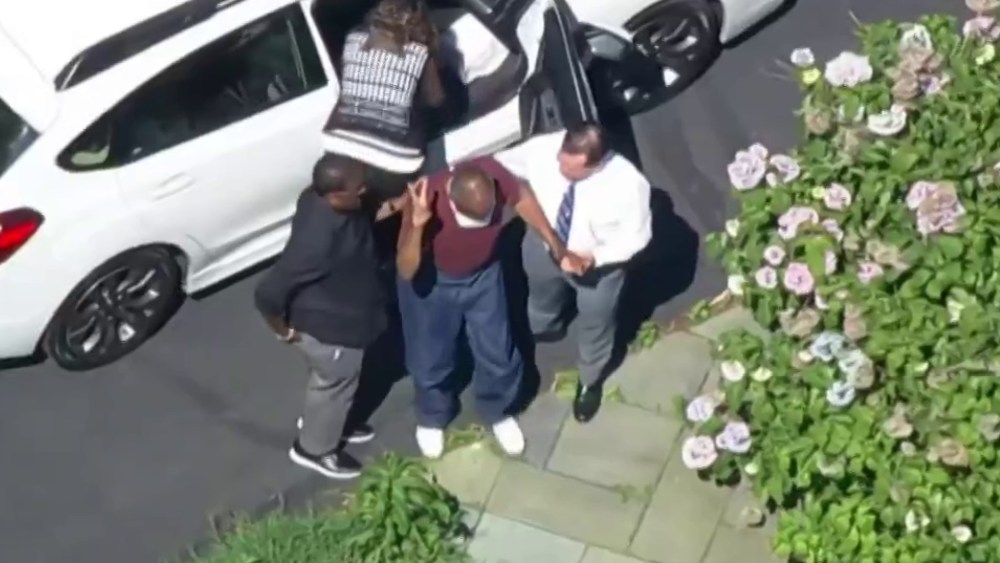 Bill Cosby flashes peace sign while arriving home after prison release