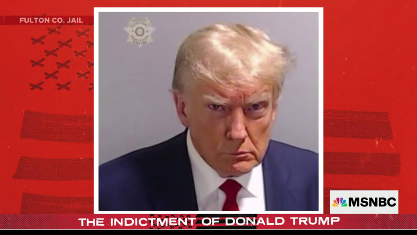 The former president had his mug shot taken while being booked on charges in Fulton County DA Fani Willis' 2020 election probe in Georgia.