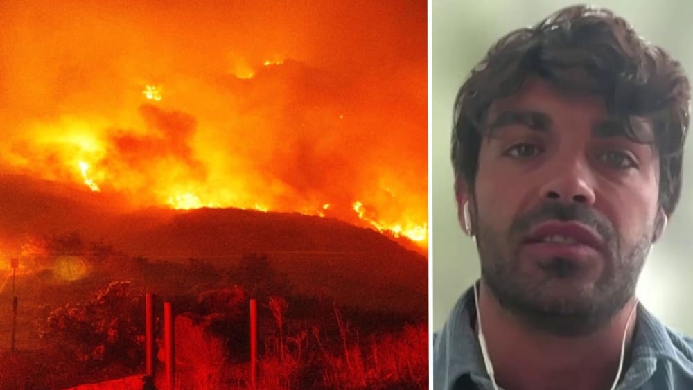 Californian describes couple’s ‘surreal’ escape from Malibu wildfire with potbelly pig and goats