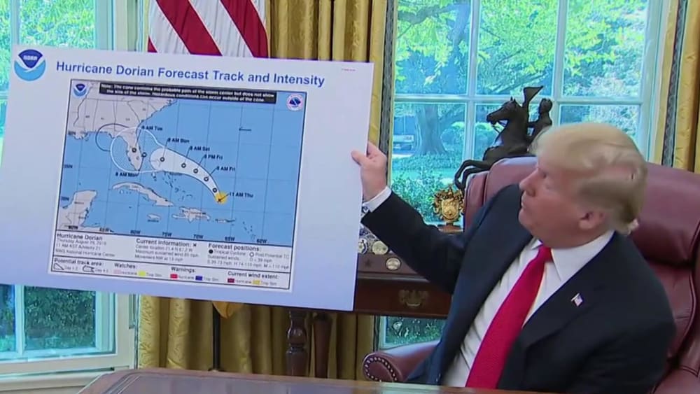 Trump shows hurricane chart that appears to be altered