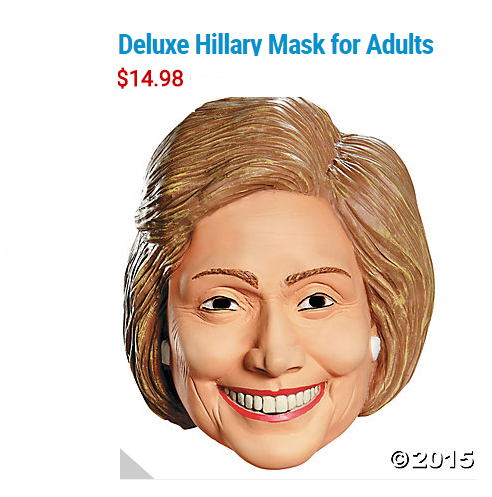 Combine this mask ($14.98) with any pantsuit, sunglasses, and smartphone to show the world you are ready for Hillary….to be your Halloween costume!