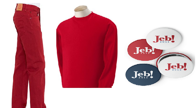 To show your support of Jeb Bush this Halloween, follow the former Governor’s lead and separate yourself from the Bush name…or separate yourself from any name and just go as Jeb’s exclamation point! All you’ll need is a red long sleeved t-shirt (prices vary), a pair of red jeans ($39.99), and a set of official buttons ($10.00).