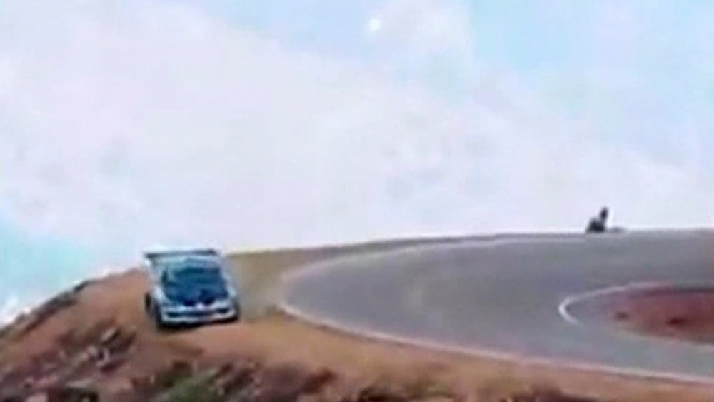 Race car tumbles down a cliff