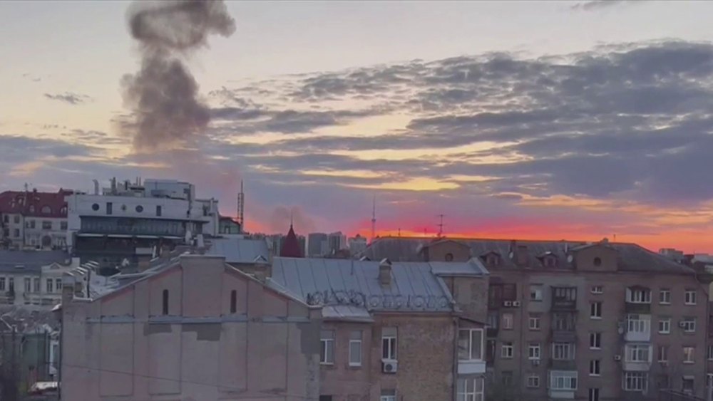 Smoke billows from Kyiv after two missiles strike city’s center