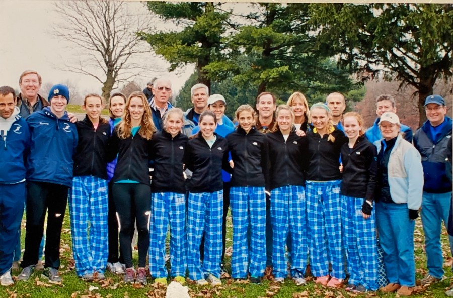 It truly was — and still is — a big extended family. We took care of each girl’s injuries, dried their tears and cheered like crazy at the races. Us parents got to every meet early to map out where we each would be on the race course for maximum cheering effectiveness and great photos. My daughters’ dad, Jim Hoffer, along with track dads Peter Rizzo and John Campbell, would run all over the course finding the best spots to cheer quickly and then dash to the finish. We were a bit of SWAT team at these races.