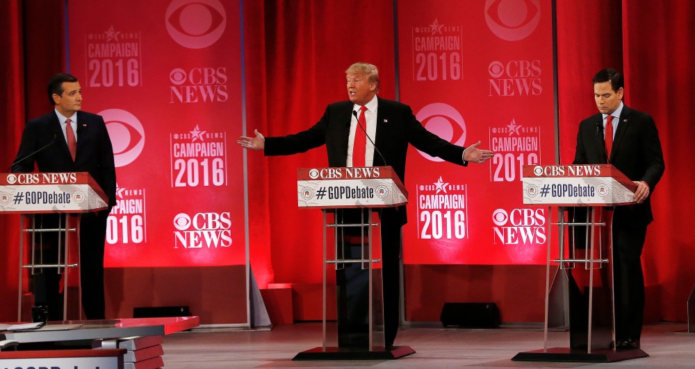 Donald Trump, Ted Cruz, and Marco Rubio—the GOP presidential frontrunners—are terrifying this country for personal gain.