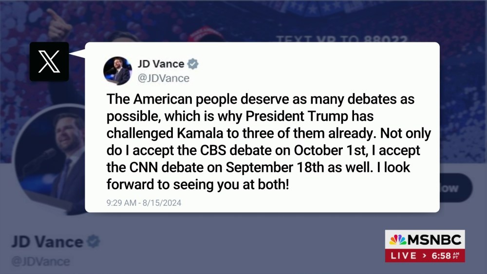 JD Vance agrees to two debates with Gov. Walz