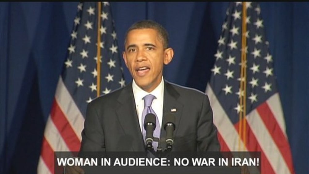 Obama responds to anti-Iran war heckler