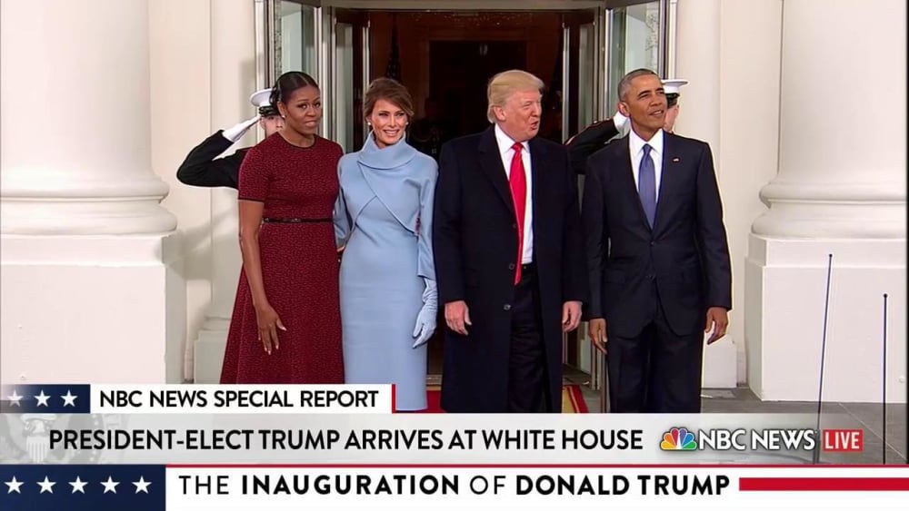 The Obamas welcome the Trumps at the White House
