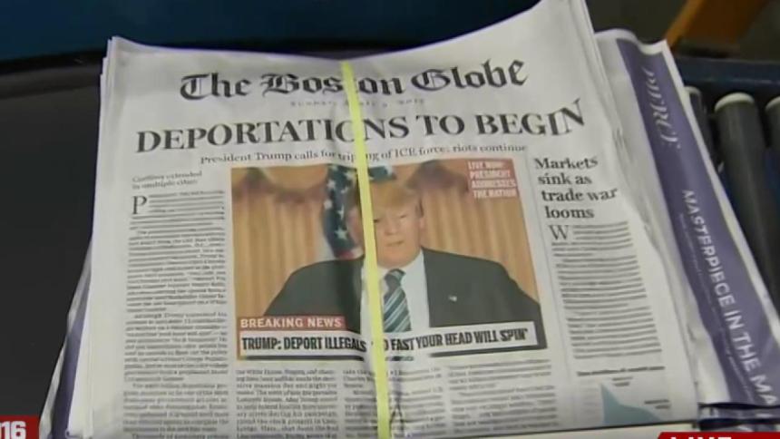 The Boston Globe on Sunday envisioned what the first months of a Donald Trump presidency would look like with a satirical front page and critical op-ed piece.