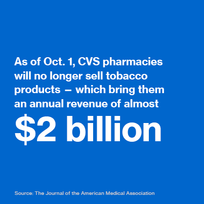 The decision will obviously affect the company’s revenues in the short-term—but it puts CVS at the forefront of a sea change in the pharmacy business. Health care is rapidly expanding into storefront settings, as chains like CVS, Walgreens, and RiteAid hire clinicians to offer basic care on site. “It’s very important to us, as we’re working with doctors and hospital systems and health plans, that they see us as an extension of their services,” Foulkes said. “So it’s virtually impossible to be in the tobacco business when you want to be a partner in the health care system”