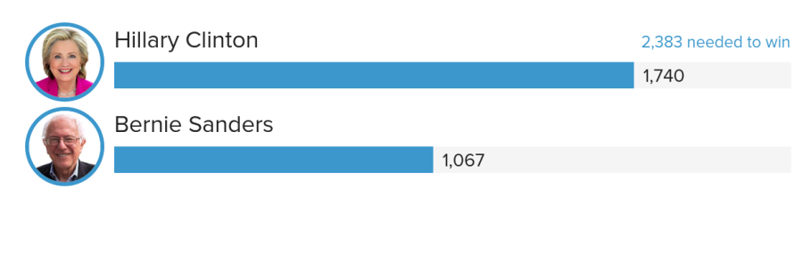 - Clinton 1281 (55% of delegates won)
