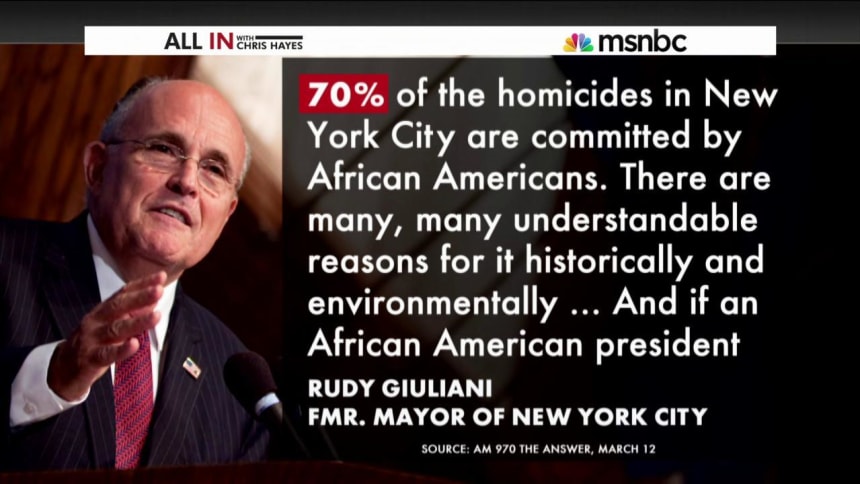 “I hate to mention it because of what happened afterwards, but (he should be saying) the kinds of stuff Bill Cosby used to say,” Giuliani said on a New York radio show according to the New York Daily News, where he also made headlines for arguing that the police officer who shot and killed Michael Brown, an unarmed teenager in Ferguson, Missouri last summer, should be “commended.”