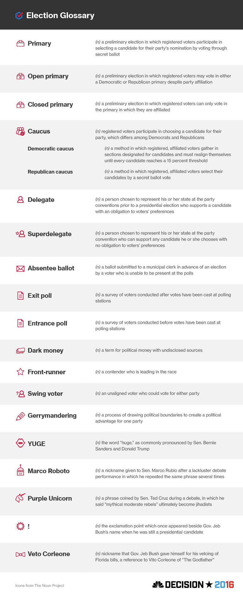 For when you need a quick explainer, refer to our official Decision 2016 Election Glossary.