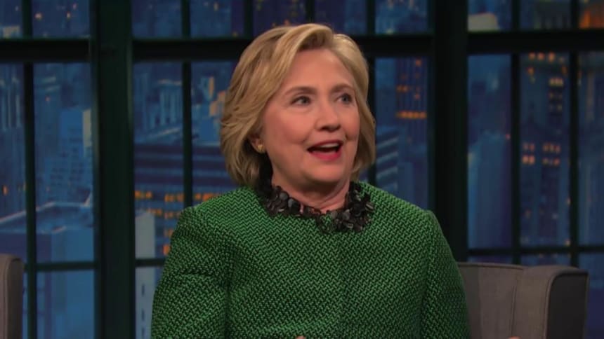 Appearing on NBC’s “Late Night with Seth Meyers” Thursday evening, Hillary Clinton said that Donald Trump has crossed a line to the point where he is no longer a laughing matter.