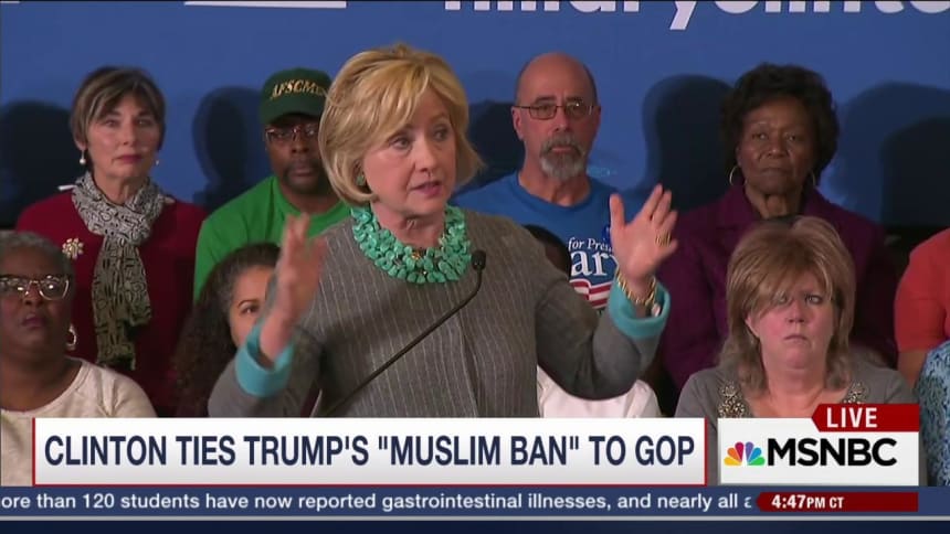 Clinton, the front-runner for the Democrats, has been extremely aggressive in attacking Trump’s anti-Muslim rhetoric, using campaign speeches, emails, social media campaigns and more to discredit the real estate mogul. At the same time, Clinton and her campaign have been trying to make other Republican presidential candidates pay for his sins by tying them together.