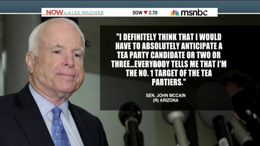 “You have to hope for the best and prepare for the worst,” McCain told msnbc when asked whether he was anticipating a tea party challenge. “I definitely think that I would have to absolutely anticipate a tea party candidate or two or three … everybody tells me that I’m the number one target of the tea partiers.”