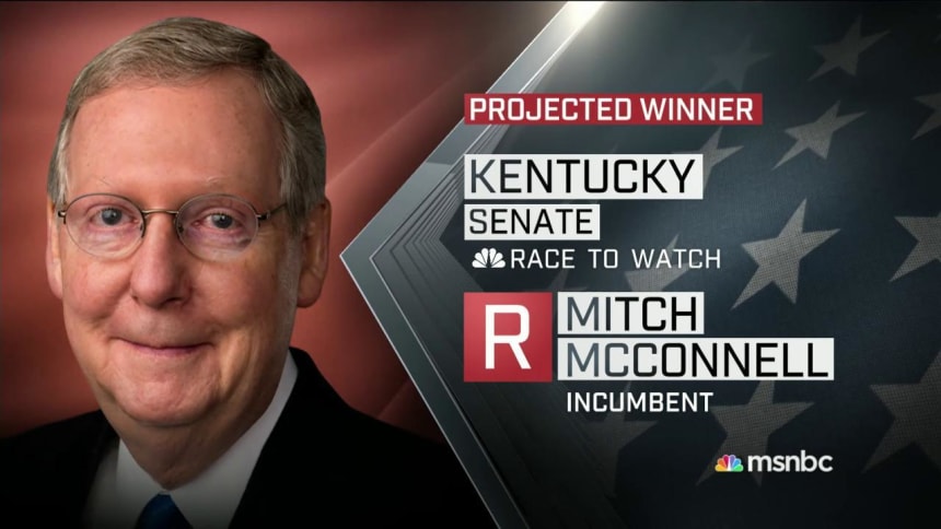 NBC News projected that McConnell would retain his seat for a sixth straight term with 99% of precincts reporting. Despite polls showing the race close throughout, he defeated Grimes by 15 points.