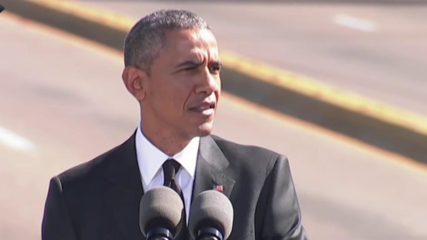 Obama also noted that, despite five decades’ worth of change, voting rights are once again in peril. “Right now, in 2015, 50 years after Selma, there are laws across this country designed to make it harder for people to vote,” he said, adding, “Meanwhile, the Voting Rights Act, the culmination of so much blood and sweat and tears, the product of so much sacrifice in the face of wanton violence, stands weakened, its future subject to partisan rancor.”