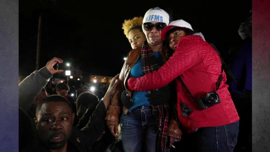 On Monday night, as the grand jury’s decision was being read by St. Louis County Prosecutor Bob McCulloch, Brown’s mother, Leslie McSpadden joined hundreds of supporters outside of Ferguson police headquarters. She stood atop a platform, visibly grief stricken. “You know what them bullets did to my son!” she told the crowd through tears spilling down from behind a pair of large, dark sunglasses. “I ain’t never had to go through nothing like this.”