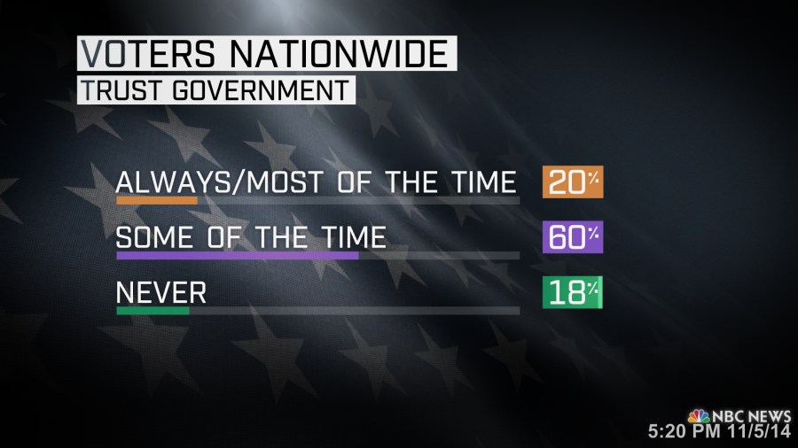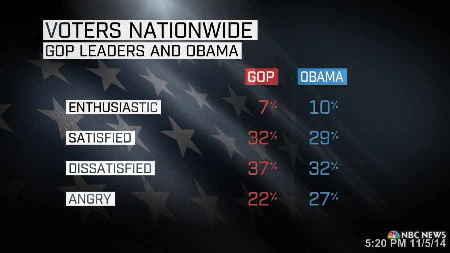 One message coming out of the 2014 election is that voters are unhappy with everyone in Washington. The NBC News national exit poll found that nearly 1-in-5 voters has lost all trust in the federal government, and a similar number are actually angry with both President Obama and the Republican leaders in Congress.