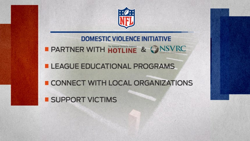 The NFL is also throwing its weight behind the National Sexual Violence Resource Center and Loveisrespect, a project of the National Domestic Violence Hotline and Break the Cycle, which serves as a resource to help young people to prevent and end abusive relationships.