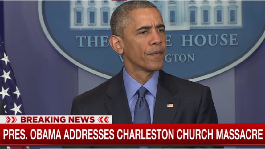 President Obama expressed heartache and anger Thursday over the shooting massacre that left nine people dead in a historic black church in Charleston.