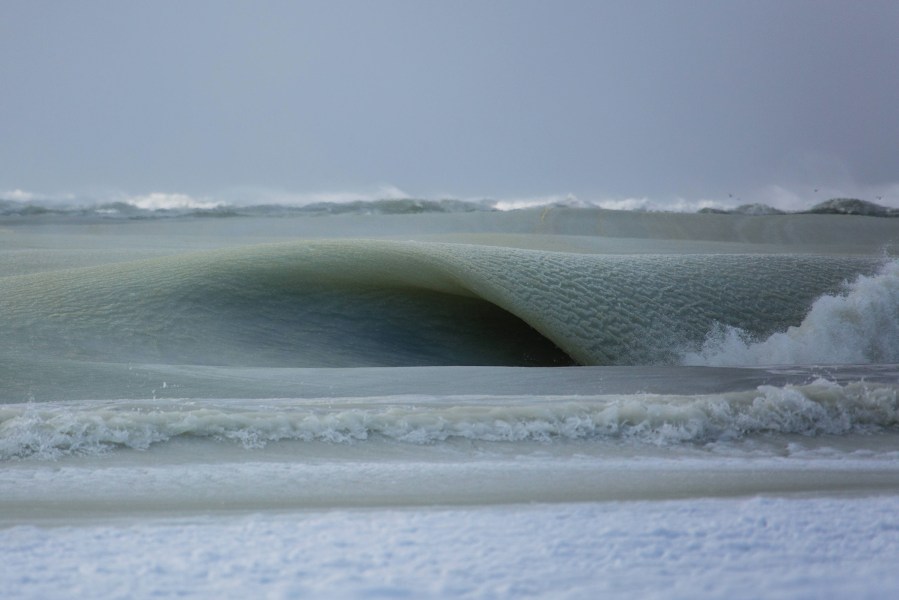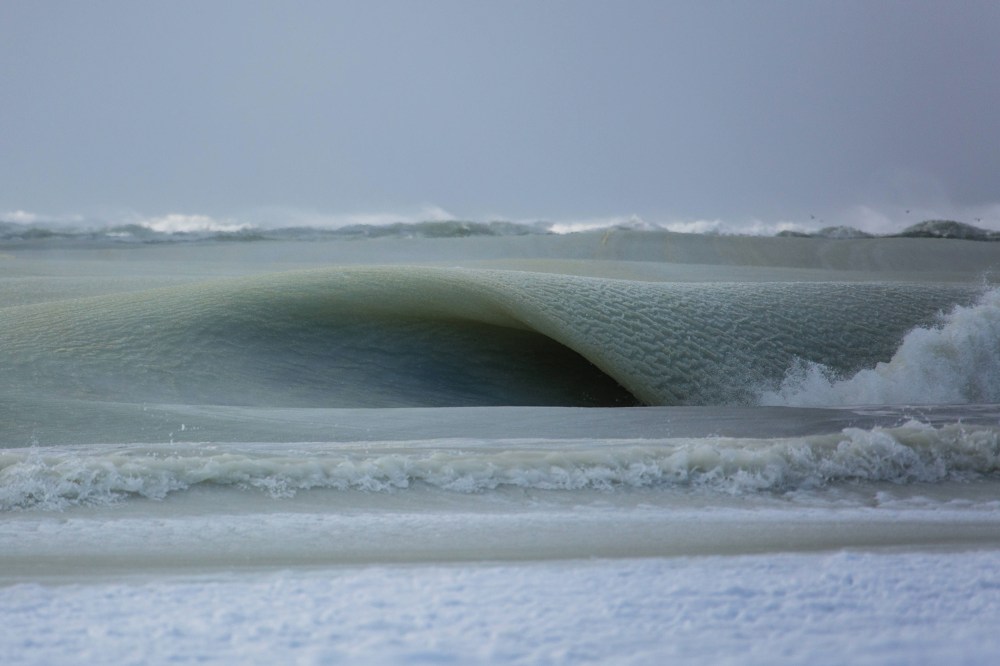 Nimerfroh said he returned to the beach the next day to see if the waves had melted. Instead, the ice was creeping forward and, at the same distance where he’d seen slush waves previously, “the water had frozen solid and there were no waves at all,” he said. “I’ve been asking all the fishermen and surfers I know if they have ever seen such a thing and they have all reported that this is a first, a result of it being the coldest winter we’ve had in 81 years.”