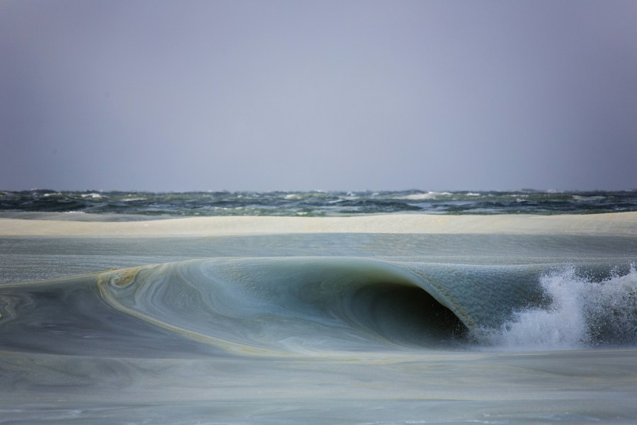 If only photographer Jonathan Nimerfroh had a specially designed “slurfboard,” he could be riding the semi-frozen waves rolling onto the shores of Nantucket. Instead, the intrepid photographer resorted snapping these shots while “absolutely freezing on the beach.”