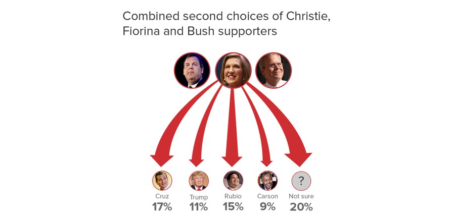 While the media has been largely consumed by examining the GOP front-runner, asking about second choices is the key to understanding how the race will likely develop once candidates drop in viability or drop out altogether. In other words, who stands to topple Donald Trump once the field narrows?