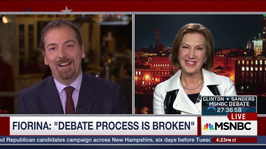 “It just seems odd to me that someone who is polling above people on that stage, someone who has more cash on hand than people on that stage, someone who has a better ground game than people on that stage, someone who’s on more ballots than people on that stage … it seems odd … that I’m the only person being excluded,” Fiorina said on MSNBC’s “MTP Daily” on Monday.
