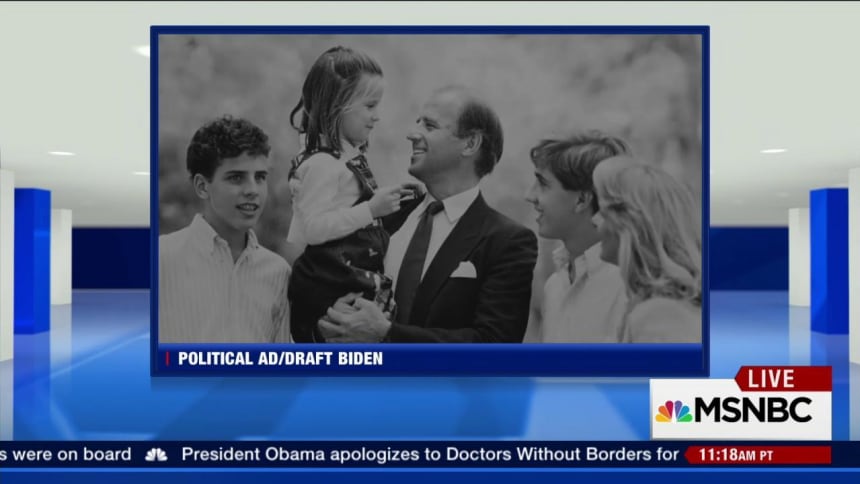 The ad from the Draft Biden super PAC featured black-and-white images of Biden’s family over audio of a commencement speech Biden gave where he discussed overcoming personal tragedy. It references two tragedies that have bookended Biden’s political career — the death of his wife and daughter in a car accident in 1972 and the death of his eldest son Beau this summer.