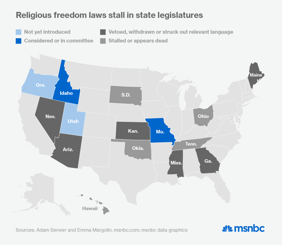From Georgia to Hawaii, religious freedom bills have stopped dead in their tracks as supporters scramble to put distance between their measures and SB 1062. Though these bills may resurface, it likely will not be during this legislative session.