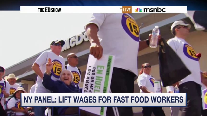 Demonstrators gather in front of a McDonald's restaurant to call for an increase in minimum wage on April 15, 2015 in Chicago, Illinois. Getty Images