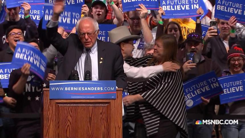 That’s where Sanders spent Tuesday rallying with supporters and giving his victory speech and touting his “momentum.”
