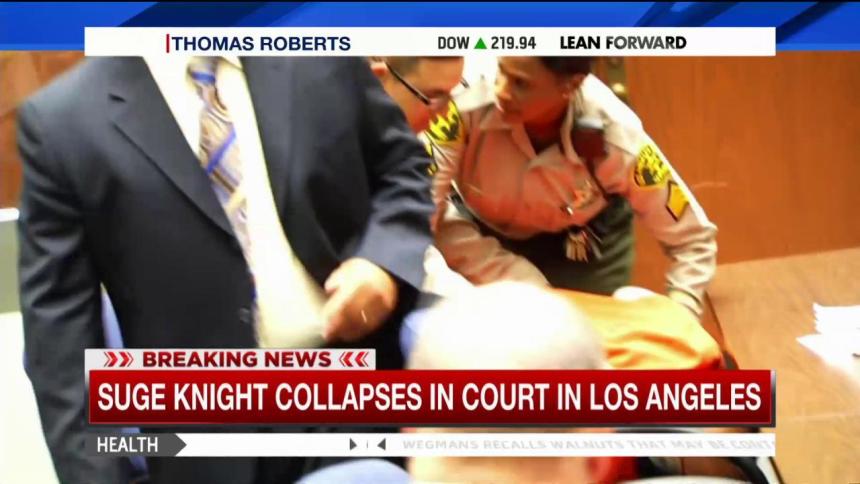 Knight, who has been taken to the hospital after several of his recent court appearances, collapsed following the hearing and was taken out of the courtroom on a gurney, his attorney told the Los Angeles Times.