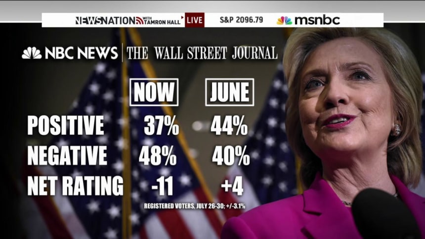 Among Republican primary voters, Trump leads the field with 22%, according to the most recent NBC News-SurveyMonkey poll which was conducted online from July 20 to 26 among 8,228 adult Americans nationwide. The next tier of candidates is congested: former Florida Gov. Jeb Bush and Wisconsin Gov. Scott Walker both receive 10% of support, and Ben Carson and Florida Sen. Marco Rubio earn 8% each. With a confidence interval of plus or minus 2.7 percentage points, there could be no real difference with those earning 10% and those pulling in 5% or 6% of Republican voters – which would place Texas Sen. Ted Cruz, Kentucky Sen. Rand Paul and former Arkansas Gov. Mike Huckabee into that same second tier.