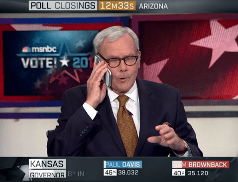 On Election Night 2014, Tom Brokaw stopped by to help cover the election results with Rachel Maddow and Chris Matthews. But then something unexpected happened … on live TV!