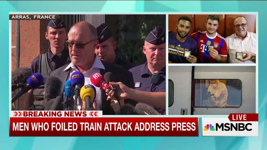 Incredibly proud of 3 American heroes who subdued attacker on #FrenchTrain yesterday. Wishing speedy recovery to those injured.