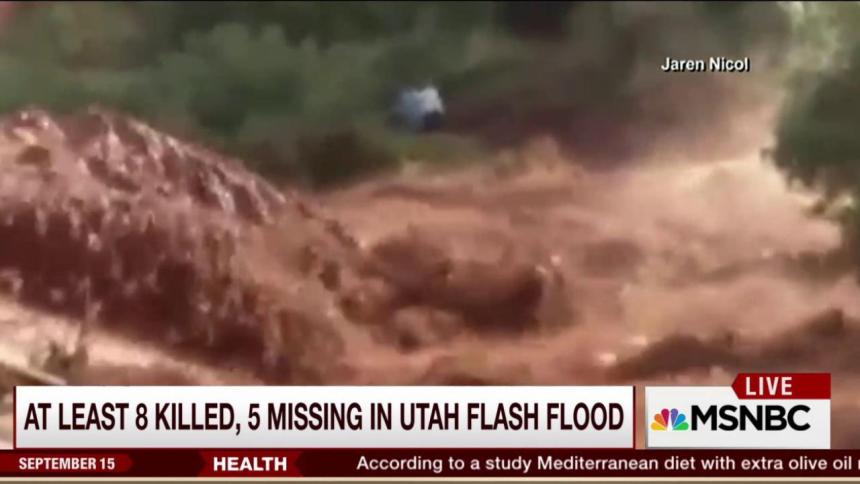 Flash flooding triggered by a strong thunderstorm killed at least eight people in southern Utah, authorities said. Five others remained missing early Tuesday.