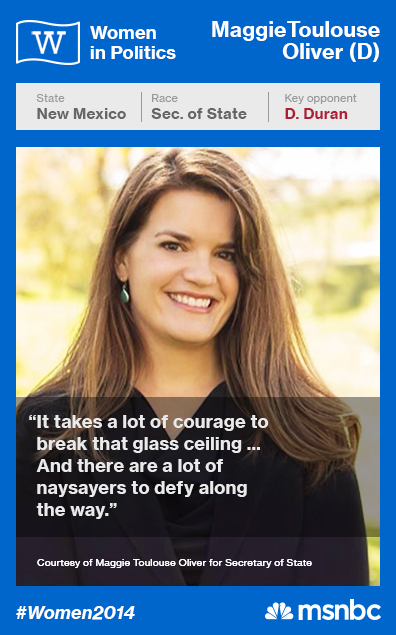 Here’s the deal: Oliver — previously the youngest female elected official in the state of New Mexico — has heavily campaigned on voting rights and expansion in the state. Oliver, who served as Bernalillo County Clerk since 2007, is fighting for the secretary of state seat against incumbent Dianna Duran — a Republican who supports voter ID. Chuck Todd on “The Daily Rundown” called Oliver a “rising Democratic star” in New Mexico.