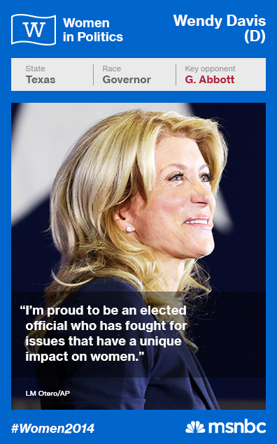 To showcase a year of textbook races for women, msnbc introduces ’30 in 30,’ a new series where the 30 of the most dynamic women candidates seeking office in 2014 will be spotlighted: One a day over the next 30 days. The candidates – Democrat and Republican – have answered questions based on women’s issues and being a woman in a male-dominated industry. Welcome to Day 9!