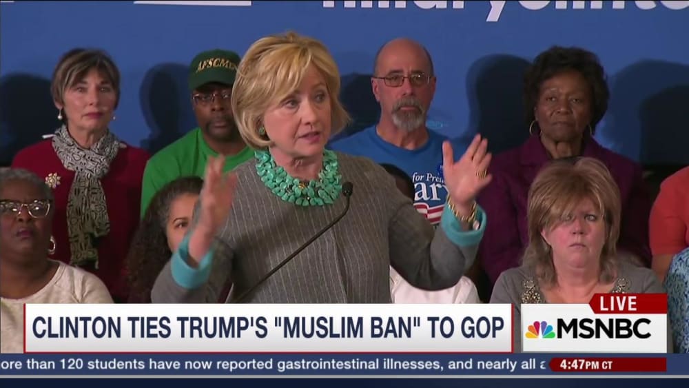 Clinton Ties GOP Field to Trump