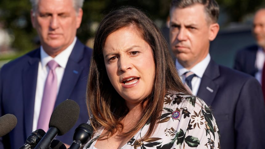 Speaking at a news conference Tuesday, House Republican Conference Chair Elise Stefanik attempted to shift blame.