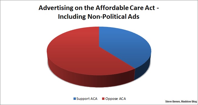 Update: Some friends on the right are suggesting that the study from the Campaign Media Analysis Group at Kantar Media paints an incomplete picture, since the 15-to-1 results point only to political advertising. What about the $249 million spent by the government and insurance companies to encourage enrollment?
