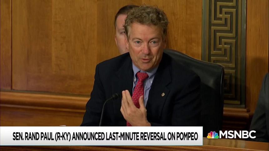 Oddly enough, this is a rare instance in which one of the president’s predictions proved true. Just last week, Trump was asked at a White House event if he was concerned about Mike Pompeo’s confirmation. “I will say this about Rand Paul: he’s never let me down,” the president said. “Rand Paul is a very special guy, as far as I’m concerned. He’s never let me down. And I don’t think he’ll let us down again.”