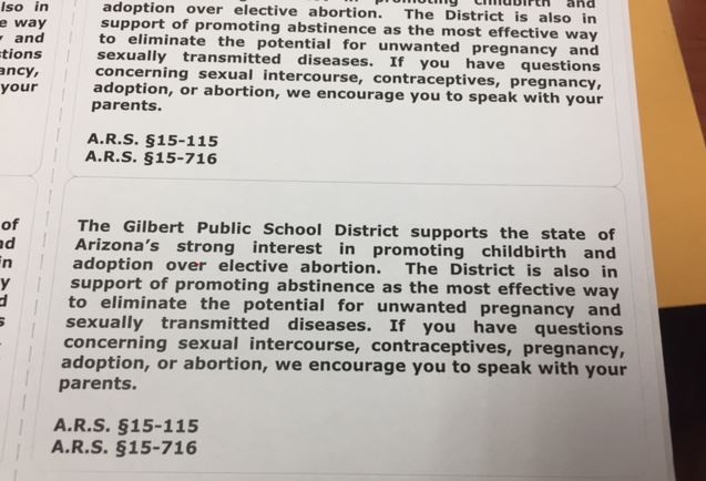After a crusading religious group showed up at the Gilbert, Arizona school board meeting with three Republican state senators to complain about the presence of a mention of abortion in an honors biology text book, the board voted to get rid of that material. It was determined that the most efficient way to remove the offending material is to literally remove it – as in, tear the whole page out of the book.