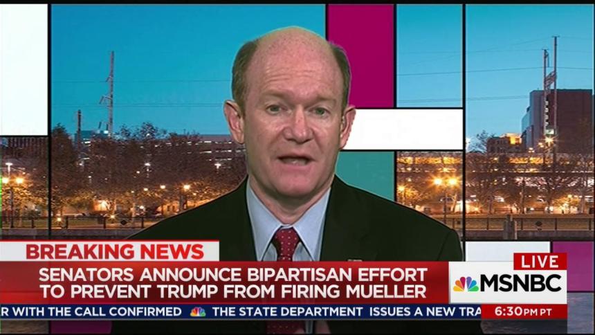 As Sen. Coons explained on last night’s show, there are actually two related pieces of legislation under consideration. His bipartisan bill would give Mueller legal options if Trump took steps to fire him, while a separate bill, championed by Sens. Lindsey Graham (R-S.C.) and Cory Booker (D-N.J.), intends to give Mueller protections before he’s ousted.