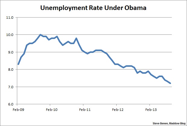 That said, at least for now, those hoping for an improving economy can credibly point to the lowest unemployment rate in nearly five years as genuinely good news. This doesn’t mean the latest job figures were good news — they weren’t — but if you’re looking for a silver lining to an otherwise disappointing report, this counts.