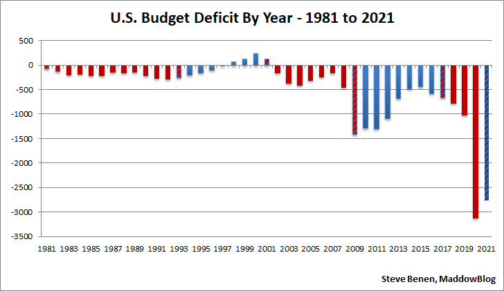 When it comes to the deficit, we've endured a consistent pattern for four decades. As the deficit shrinks in the Biden era, the pattern remains intact.
